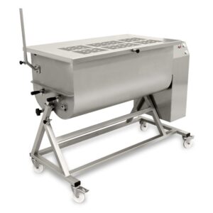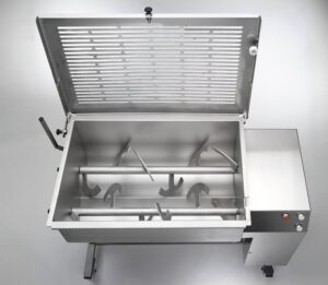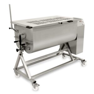 Professionella blandare för alla typer av kött och kryddor. Finns i ett antal olika storlekar för olika behov. Pålitliga, lätta att demontera, rengöra och återmontera. Lämpade för alla typer av verksamheter med köttproduktion och för stormarknader. Maskinerna finns med en eller två omrörare. De är byggda för intensiv användning och ger ett perfekt blandresultat som lätt kan tömmas ur den tippbara behållaren. Alla maskinerna är byggda i rostfritt stål och uppfyller EU:s hygien- och säkerhetsstandarder.